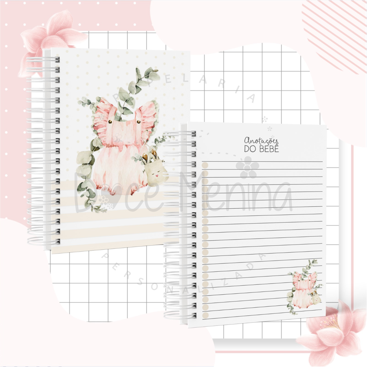 Capa dura com laminação para proteção, personalizada com o nome do bebê.