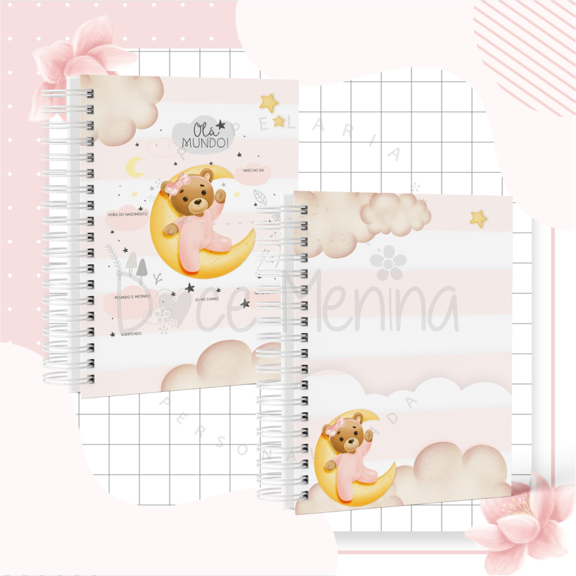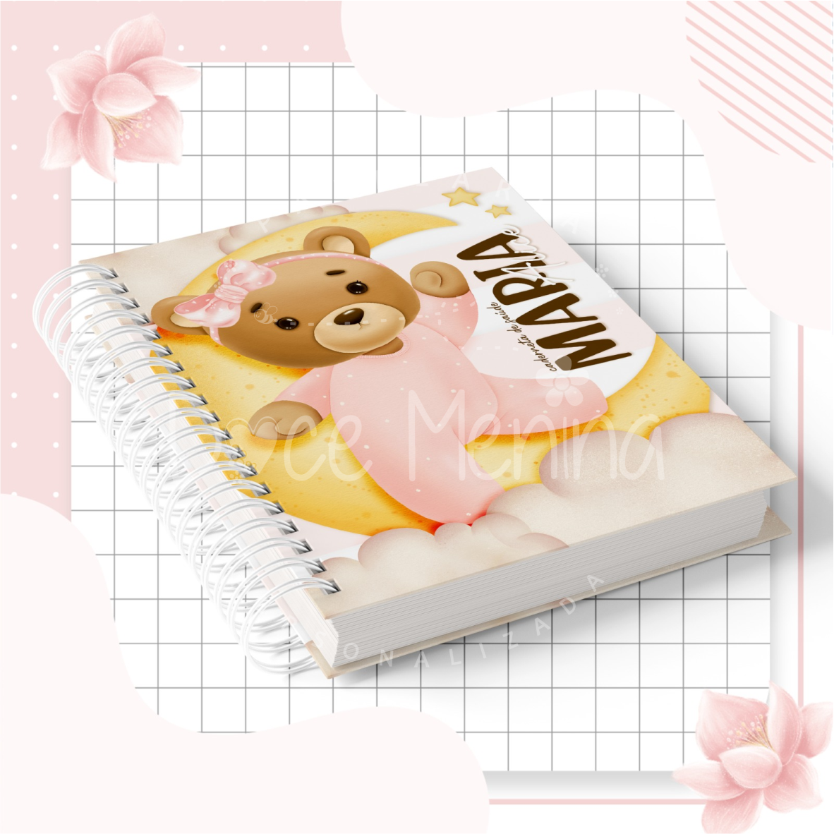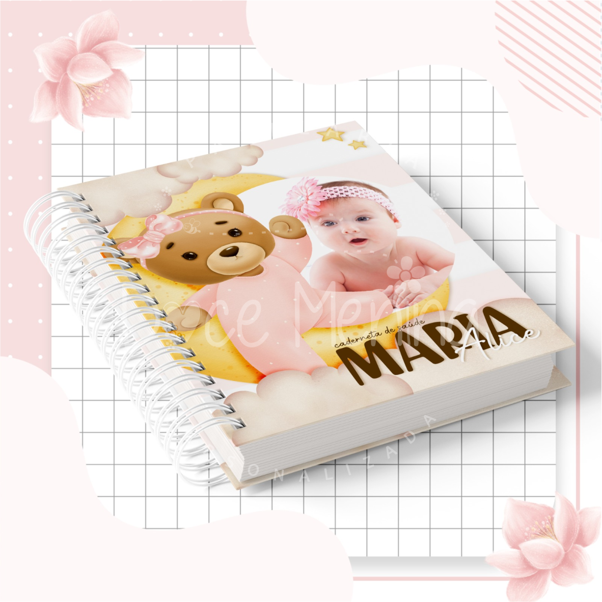 Capa dura com laminação para proteção, personalizada com o nome do bebê.