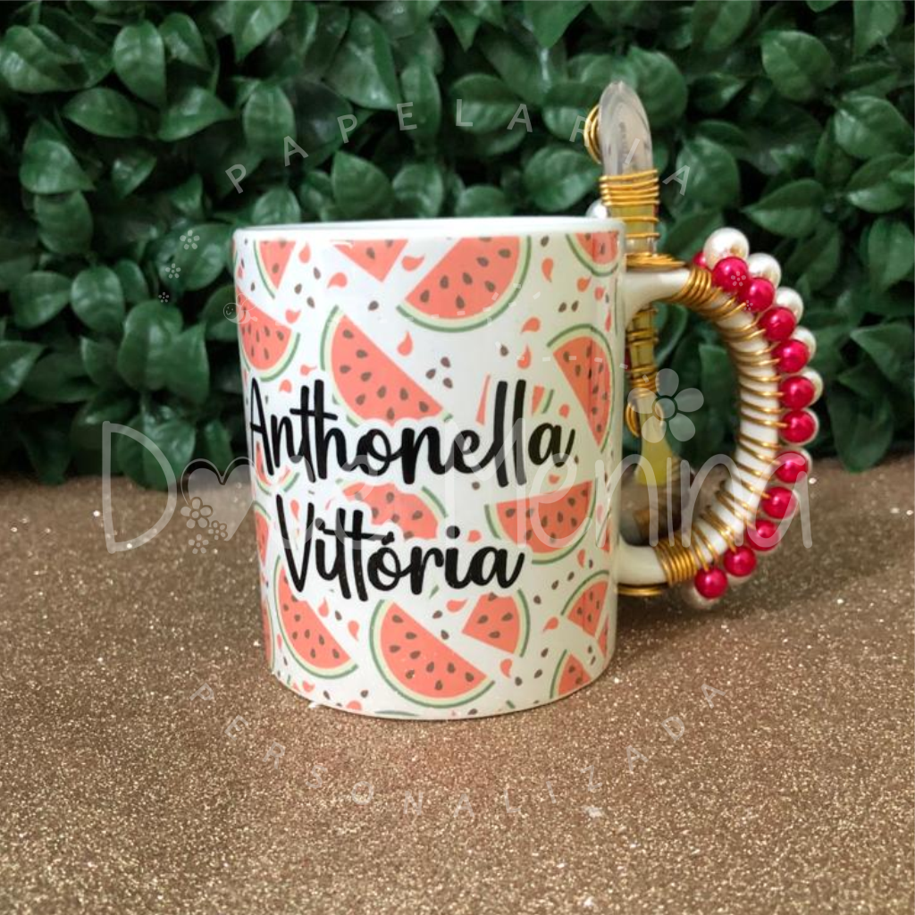 Caneca de cerâmica branca de alta qualidade, brilho e durabilidade. A alça e a colher são bordadas com pérolas com as cores de acordo com estampa escolhida. Alça e bordas arredondadas proporcionam um encaixe perfeito para suas mãos, e um melhor conforto na hora de deliciar sua bebida predileta, seja ela quente ou gelada. Estampa com qualidade fotográfica.