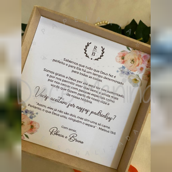 (não escrevemos os nomes dos padrinhos, pais, pajens e daminhas na tampa) e você ESCOLHE a frase, porém a mesma