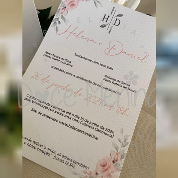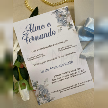 Convite impresso de acordo com a escolha na hora da compra, em Papel offset 240g