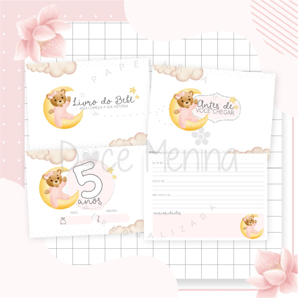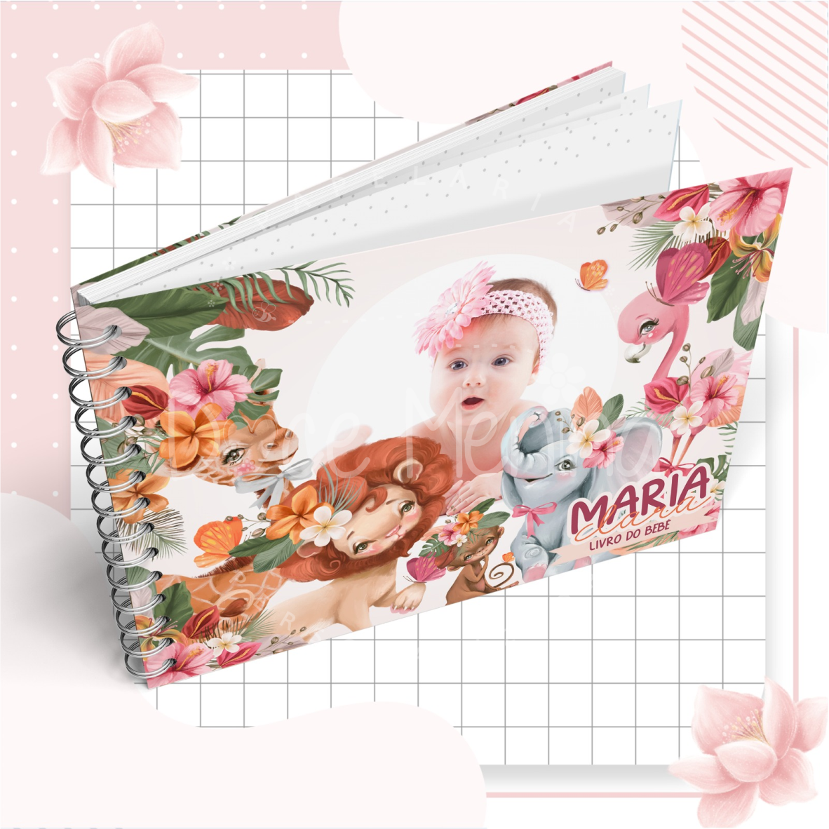Capa dura com laminação para proteção personalizada com o nome do bebê.