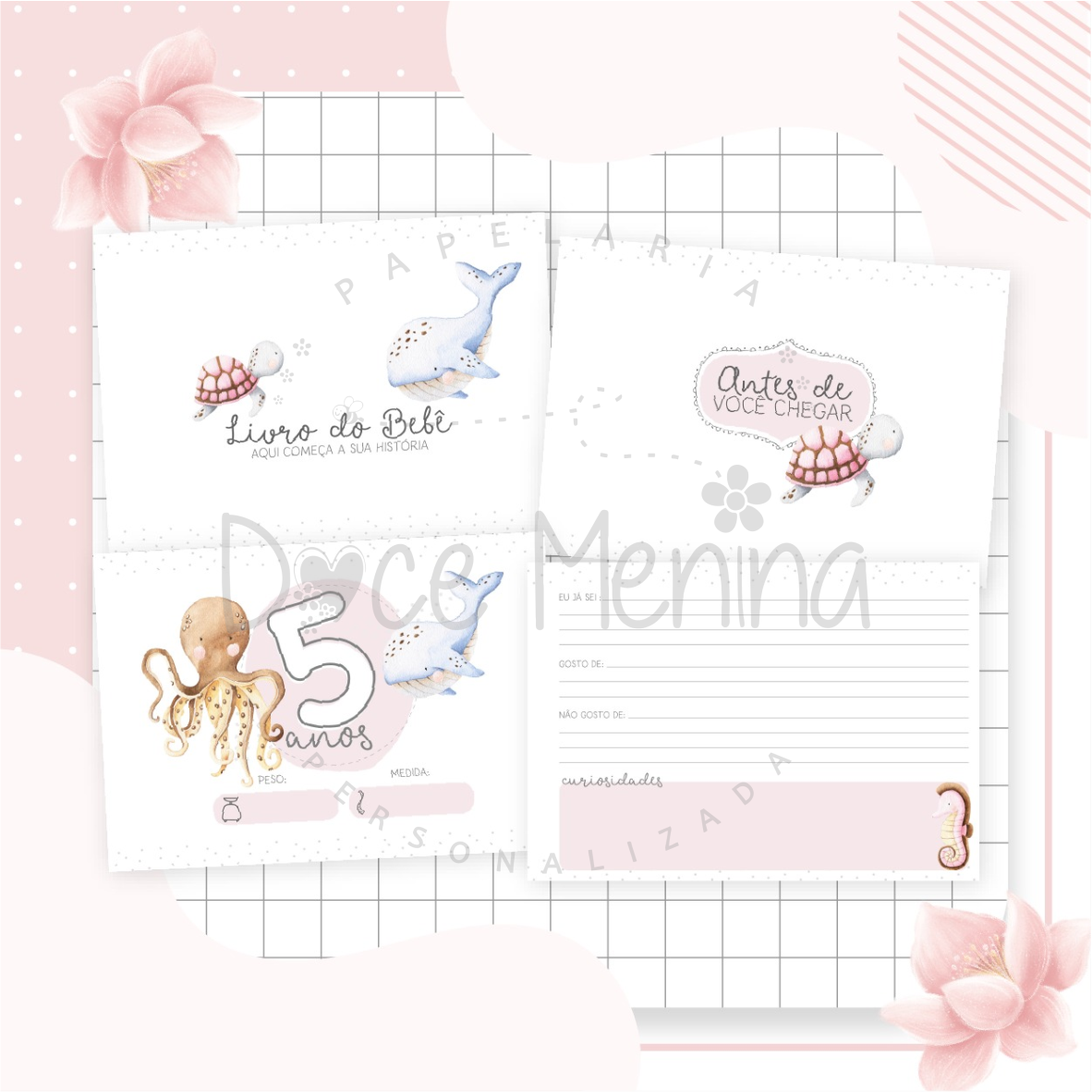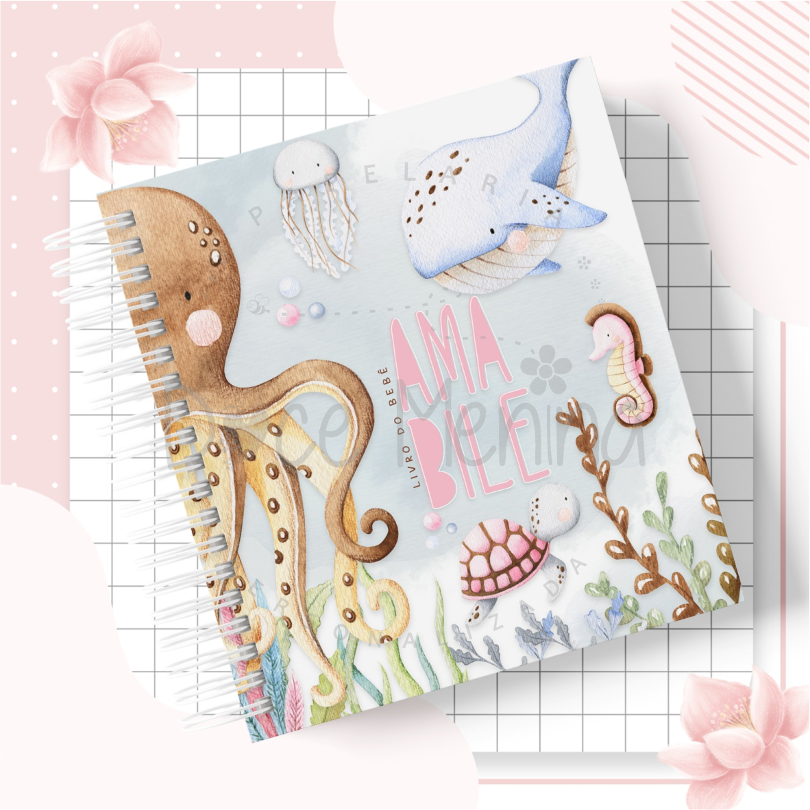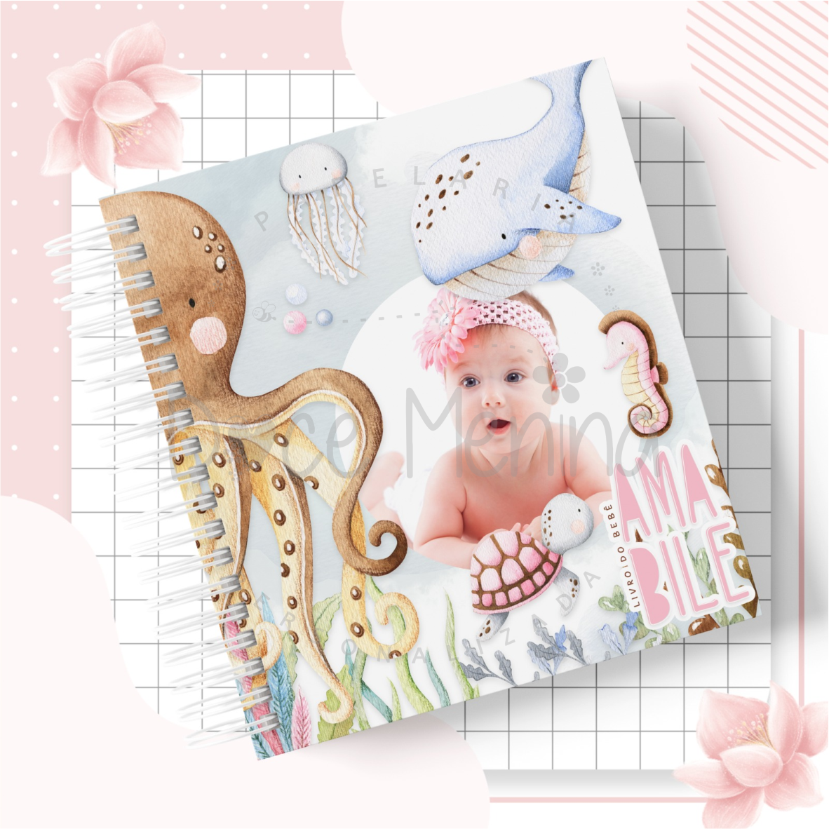 Capa dura com laminação para proteção personalizada com o nome do bebê.