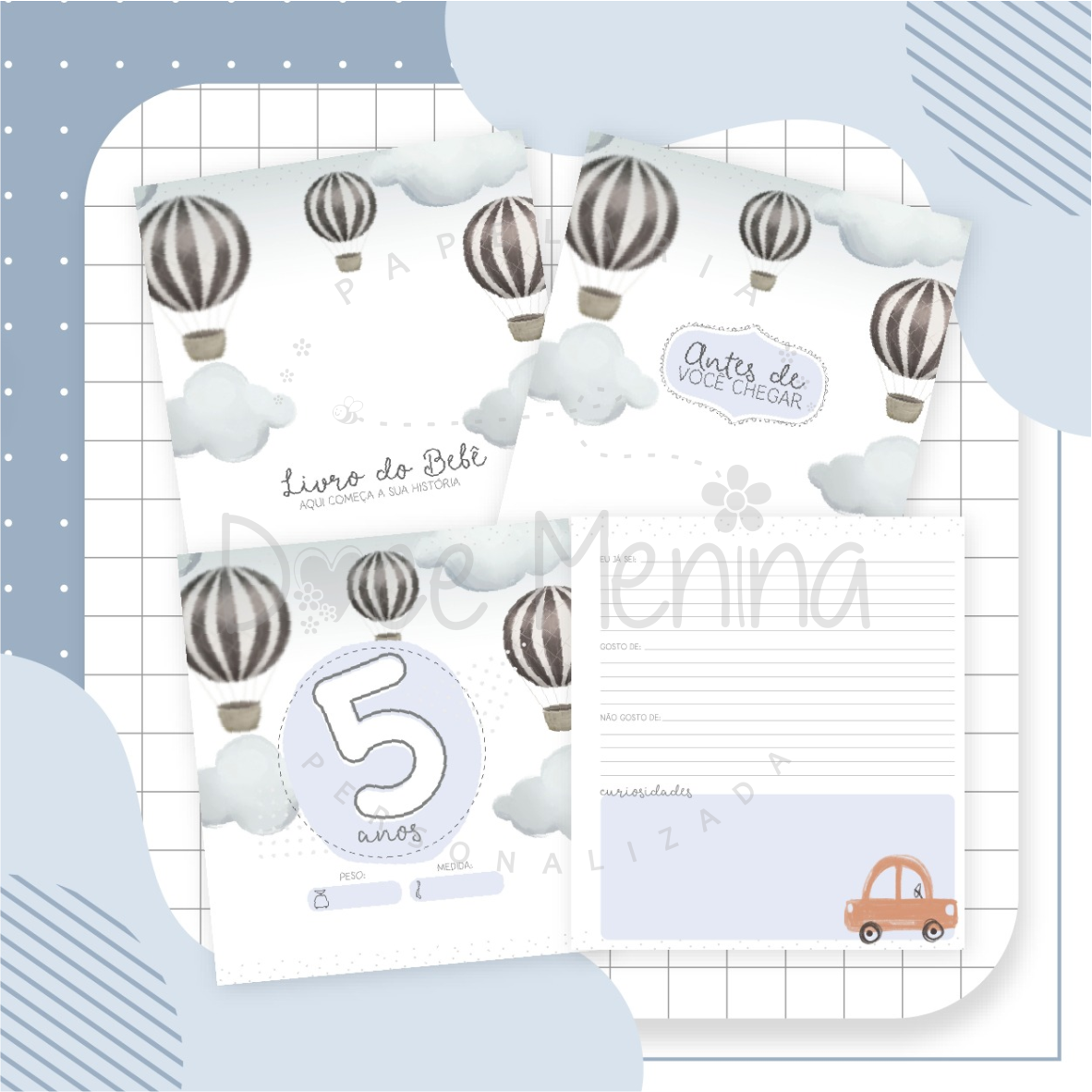 Capa dura com laminação para proteção personalizada com o nome do bebê.